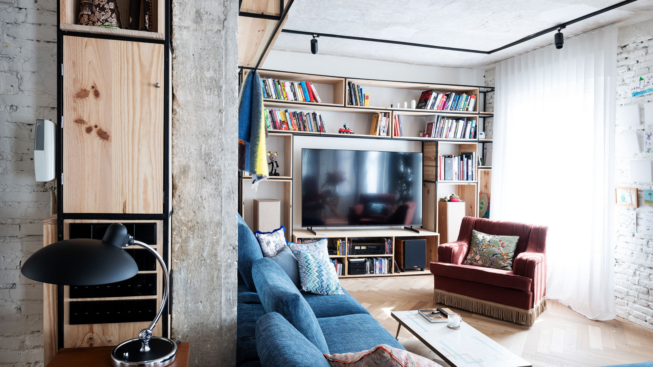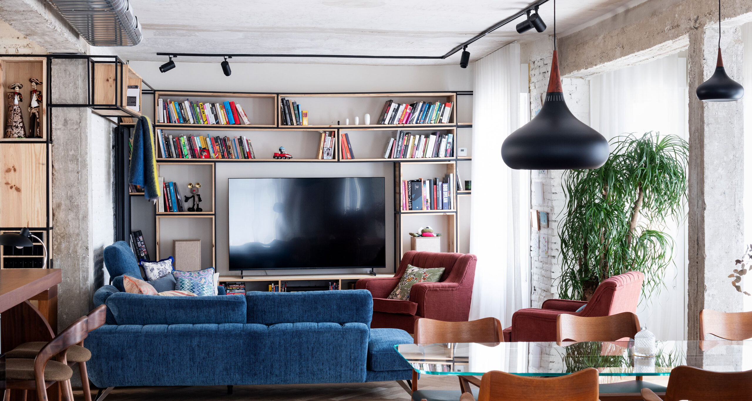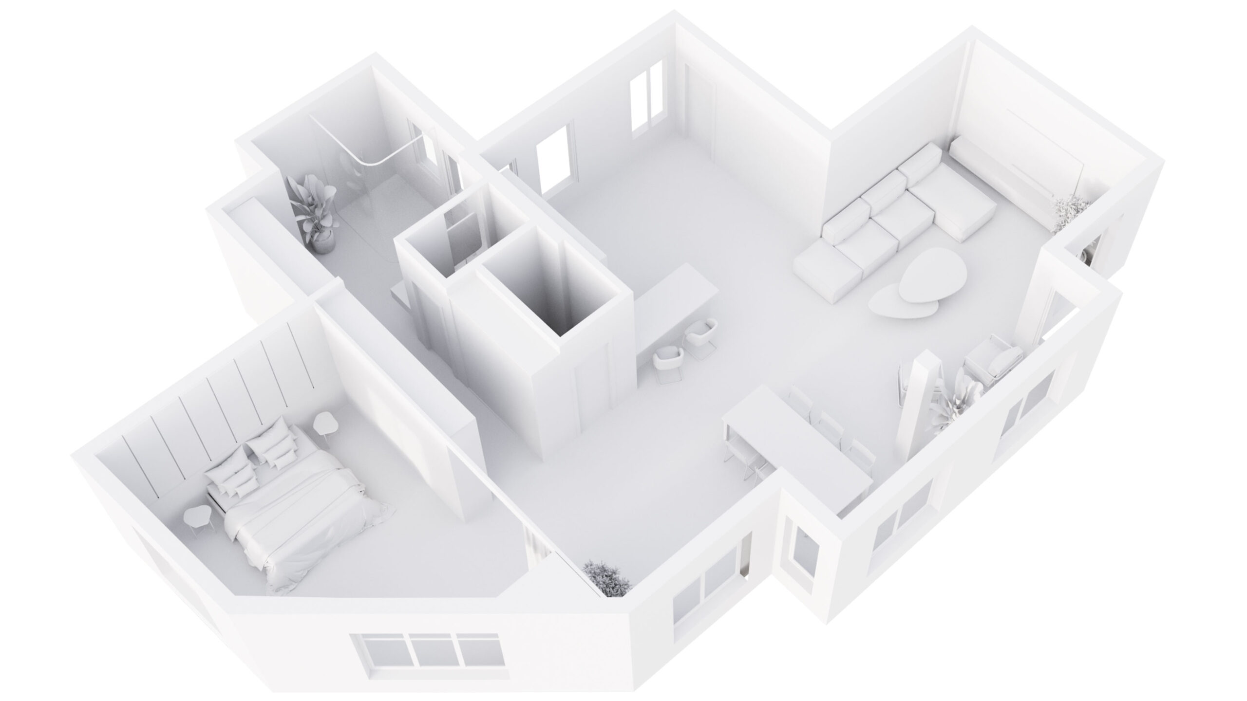 The client’s brief was to transform the apartment into a one-bedroom home with an open and flexible layout. The design responds with a single, continuous space in which all functions are defined through the strategic arrangement of furniture rather than partitions.