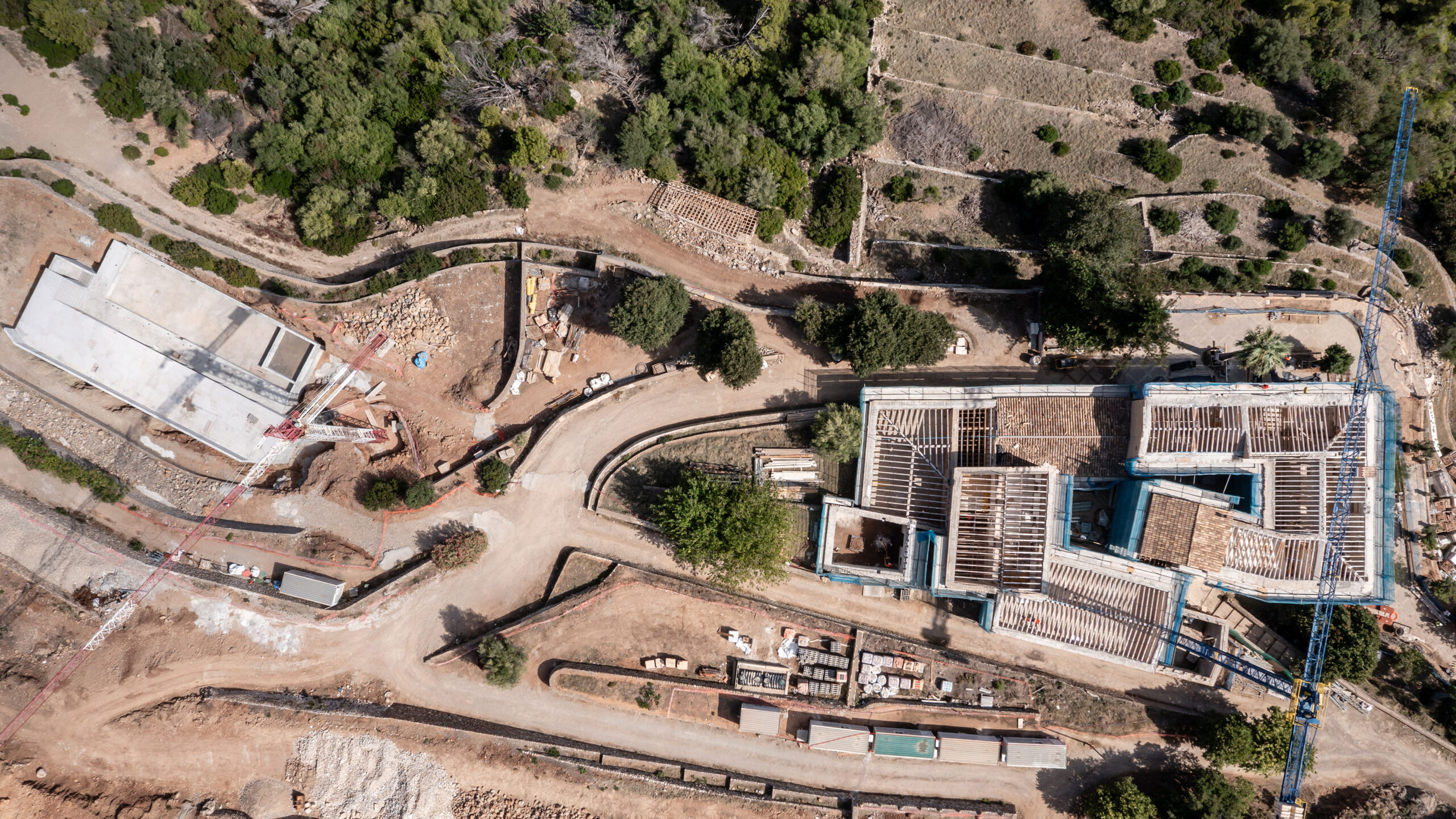 While both buildings preserve their independent accesses and volumes, they are visually connected through the landscape and the central courtyard, sharing a direct opening towards the sea and the northern coastline of the island.