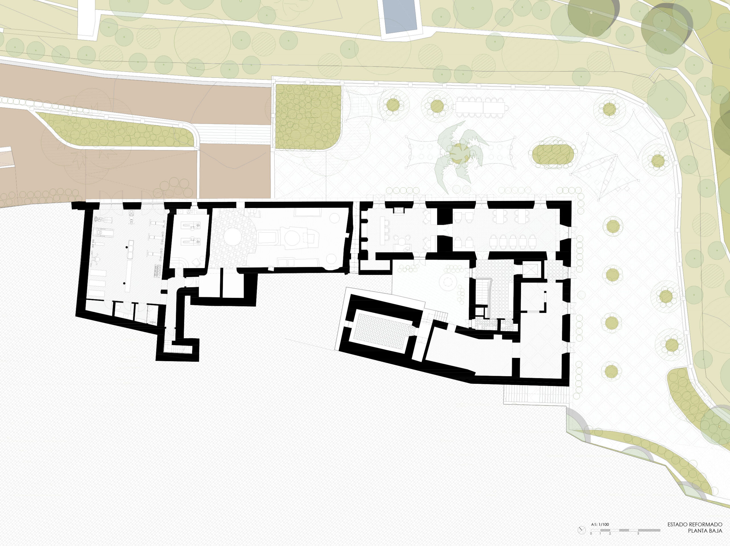 The architectural strategy is based on preserving the historical and ethnological character of the estate, intervening through criteria of minimal transformation and reversibility, and incorporating contemporary use without compromising authenticity.