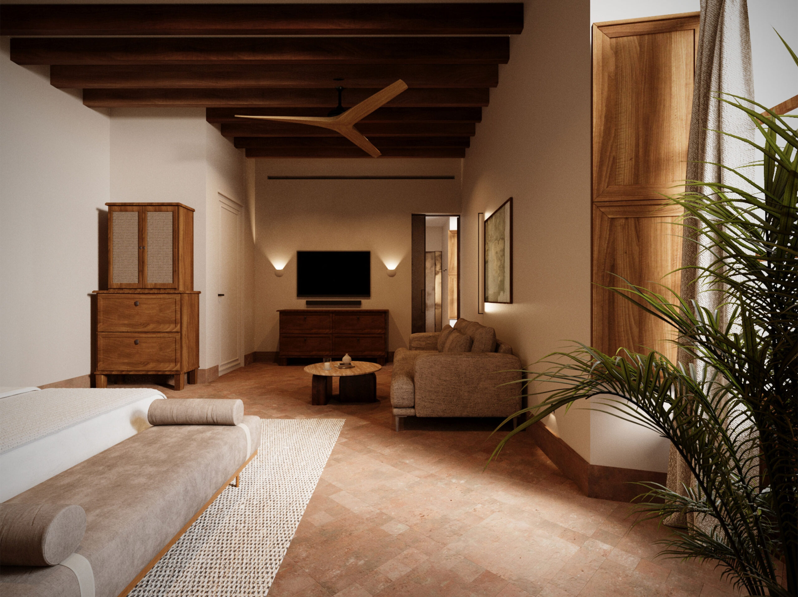 The project to transform Son Valentí into a 13-room rural hotel is conceived from a sensitive and rigorous approach. The intervention seeks to adapt the estate to its new use while preserving its essence, understood not as a frozen image but as a layered reality shaped over time. The commission was undertaken by GRAS Reynés Arquitectos in close collaboration with a multidisciplinary team of archaeologists, art historians and restoration specialists, ensuring a methodical and informed process.